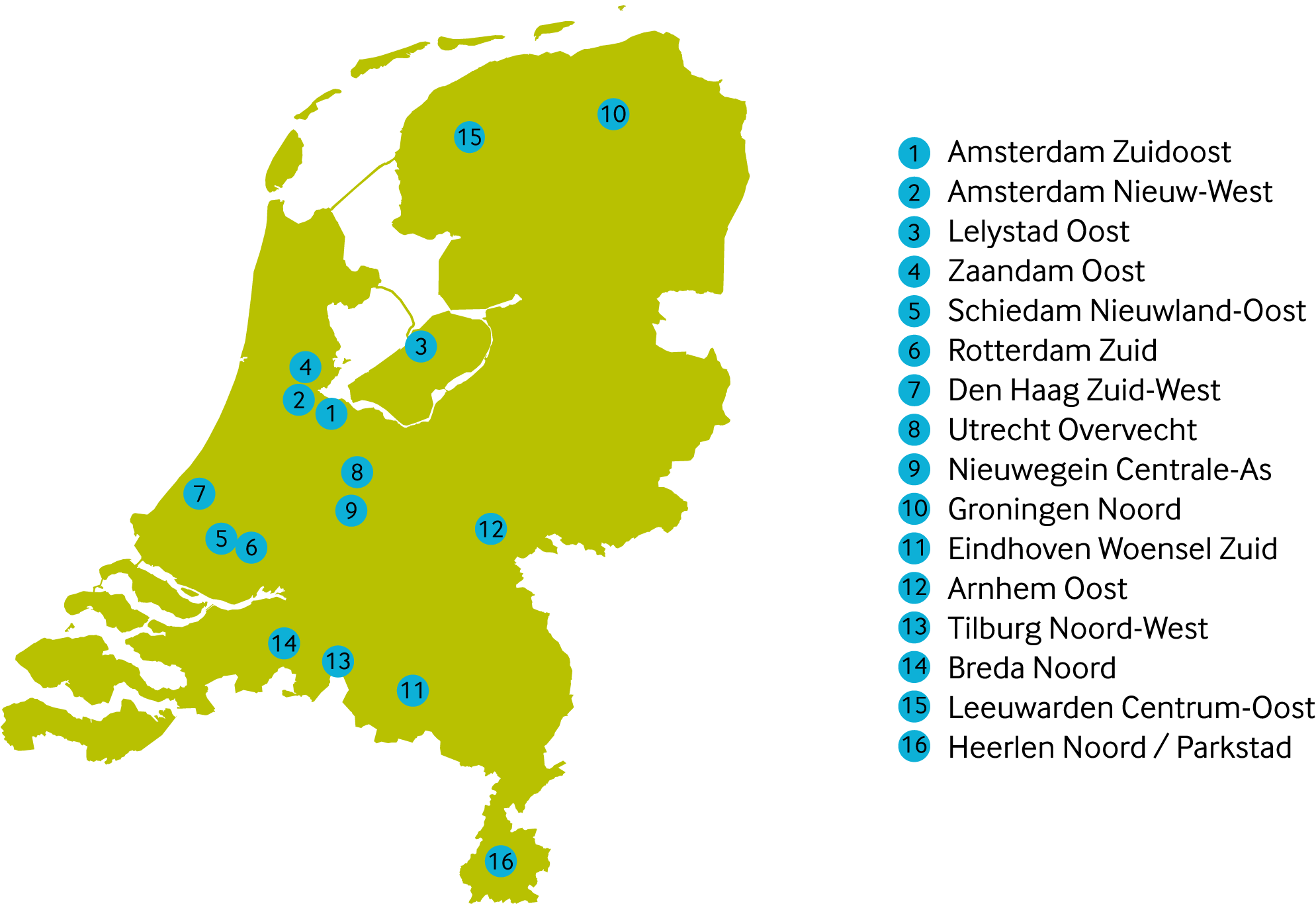 Het Rijk wenste integrale ontwikkelingsmogelijkheden te verkennen en te beproeven om de leefbaarheid en veiligheid te verbeteren in ‘gebieden met een combinatie en cumulatie van opgaven’. Vanuit dit interbestuurlijk programma is getracht een integrale aanpak te ontwikkelen voor kwetsbare wijken en buurten middels data en kennisprogramma’s. De aandacht vanuit dit programma richt zich op alle kwetsbare gebieden, met een focus op 16 gebieden waar de leefbaarheid en veiligheid het meest onder druk staat. De 16 gebieden zijn deels voorgedragen door de woondealregio’s en komen anderzijds voort uit onderzoek op basis van de Leefbaarometer. Deze gebieden kunnen aanspraak maken op een zogenaamd maatwerkbudget om gebruik te maken van gelden voor ondersteuning door externen.