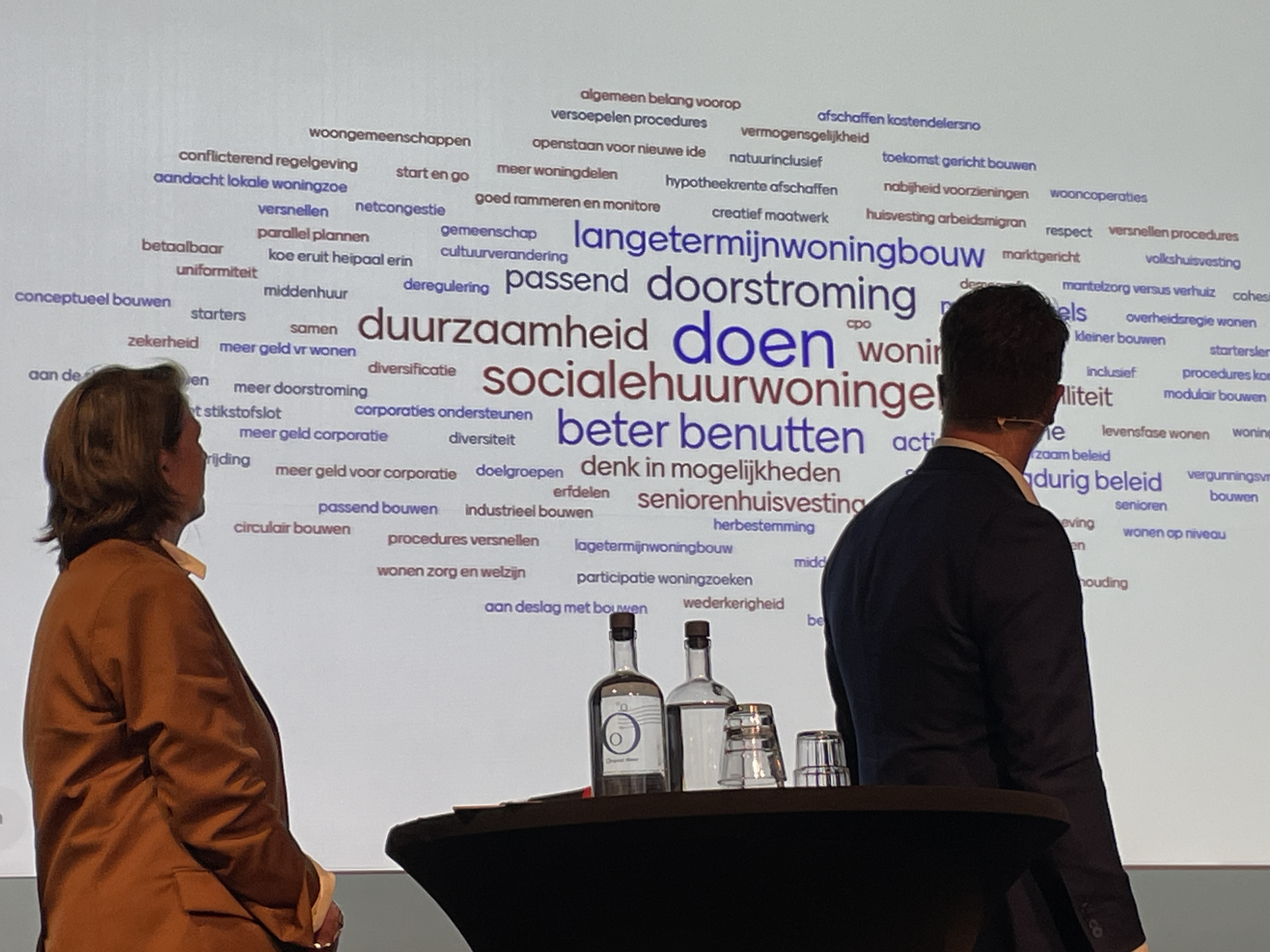 Het panel met Esther Agricola (BPD), Cor Staal (Assen), Zeno Winkels (Woonbond) en Natascha Koulen (Mooiland) constateerde dat er in de praktijk van het lokale woonbeleid nog allerlei obstakels te overwinnen zijn. Maar onderschreef eensgezind de oproep van het publiek om nu actief aan de slag te gaan: dóen! Dat was ook de crux van de column van Toine Heijmans (Volkskrant): beloof geen gouden bergen, maar ga aan de slag!